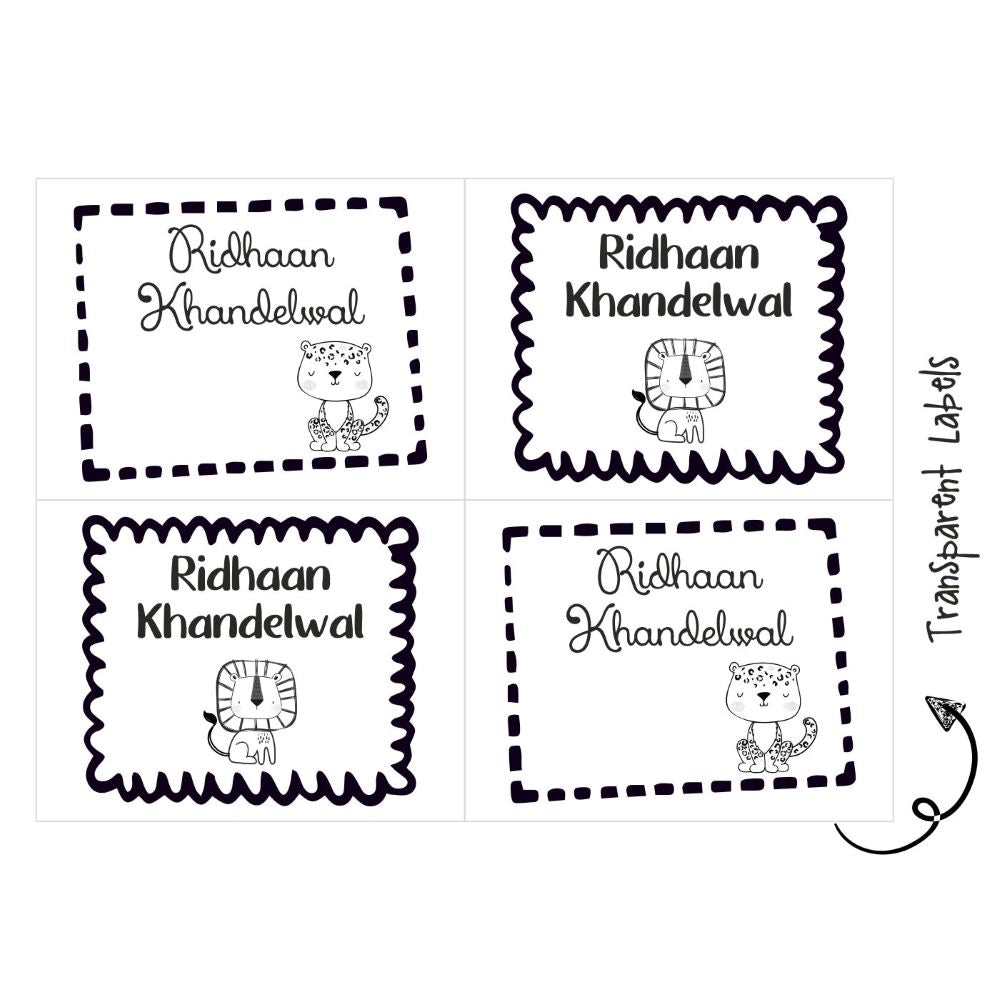These labels are water proof and with a clear background. These can be used on books, bottles , tiffin or any other accessories.