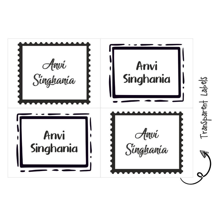 These labels are water proof and with a clear background. These can be used on books, bottles , tiffin or any other accessories.