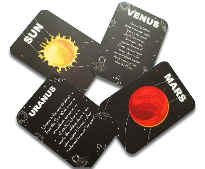 Flashcards are incredibly versatile study tool which makes learning fun and also remembrance value is very high. This pack has a combo of 4 topics namely - Animals, fruits and vegetables, professions and space flashcards. These flashcards combo are very suitable for introducing.
