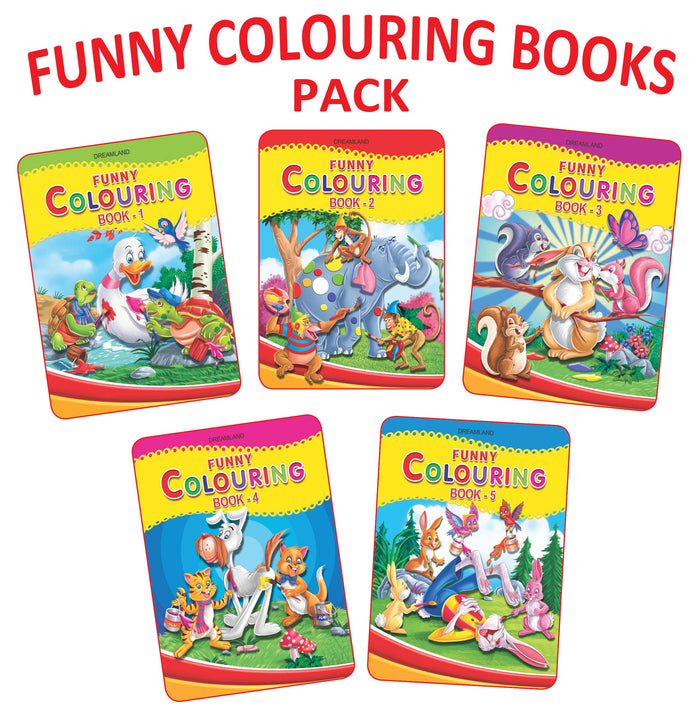 ‘Funny Colouring Books’ this pack of 5 books is a perfect tool to teach little artists how to colour. It is a perfect set of books that contains a lot of cute funny pictures to copy and colour such as a cat searching for fish, a tiger riding a bike, a mouse going to school, a bear ready to take off to space, and many more. • Ideal for age-group 2-6 • 5 books of 32 pages each • Cute cover design • Colourful presentation • Perfect for colouring with pencil colours, crayons, or sketch pens Perfect for all colouring lovers these books will provide hours of fun and creativity. It will help them practice holding a pencil or crayon correctly, improve colouring skills, and motor control needed for early learners.
