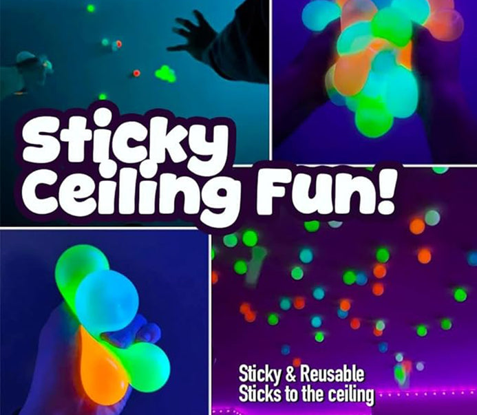 Glowballs are the perfect blend of education and entertainment, keeping kids engaged for hours! This pack of 6 multi-colored fidget balls sticks to walls and ceilings, glowing beautifully in the dark. Easy to wash and reusable!
