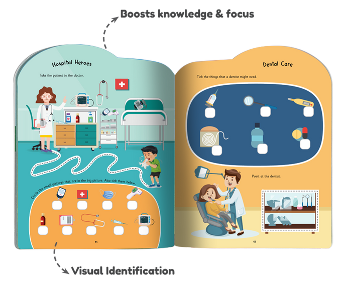 Health & Care Super Activity Book helps children explore the importance of hygiene, healthy habits, and caring for others, all through fun, hands-on play! Packed with engaging activities like tracing, matching, spot the differences, and creative drawing, this book keeps kids happily entertained while nurturing fine motor skills, focus, and early learning. With bright illustrations and glossy, smudge-resistant pages, it’s perfect for little hands, even during messy moments. Lightweight and portable, it’s ideal for travel,summer breaks, or quiet time at home. A wonderful screen-free way to introduce kindness, health, and self-care through playful learning!