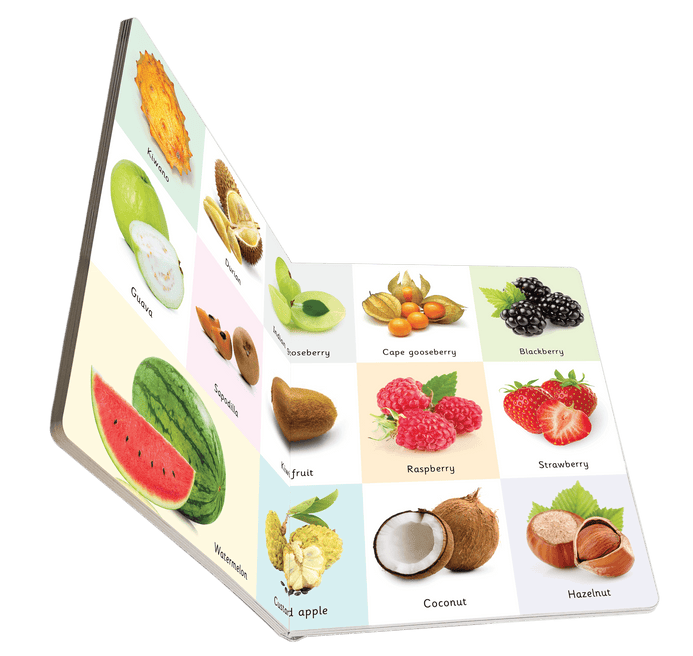 A bright board book for early learning concepts and new words. Engaging photographs and pictures will keep the child busy and happily learning new words. Good for visual skills and cognitive development.