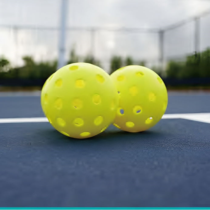 The Velocity Pickleballs are a seamless plastic whiffle ball with 40 holes specially designed for pickleball.