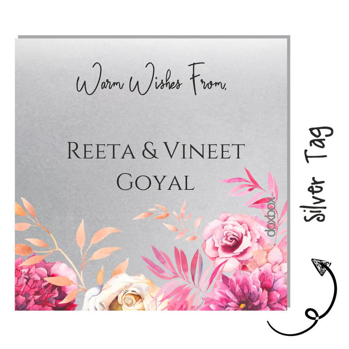 These silver mettaic tags are elegent and classy. These personalised tags are perfect for festive or any other gifting.