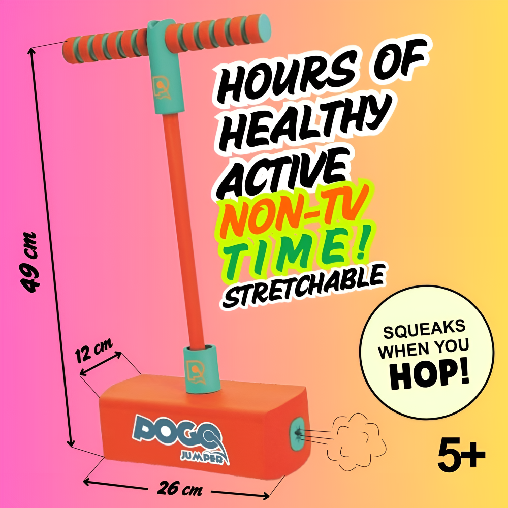 The Innov8 Sports Pogo Jumper is more than just a toy – it's a screen-free activity promoting healthy movement, muscle strength, and cardiovascular fitness in a fun way. Its soft bungee cord ensures smoother bounces and a safer experience. The non-slip foam base provides stability and is gentle on surfaces. This pogo jumper is perfect for improving balance and encouraging active play. Compact and portable, it's a parent-approved fitness toy for long-lasting use.