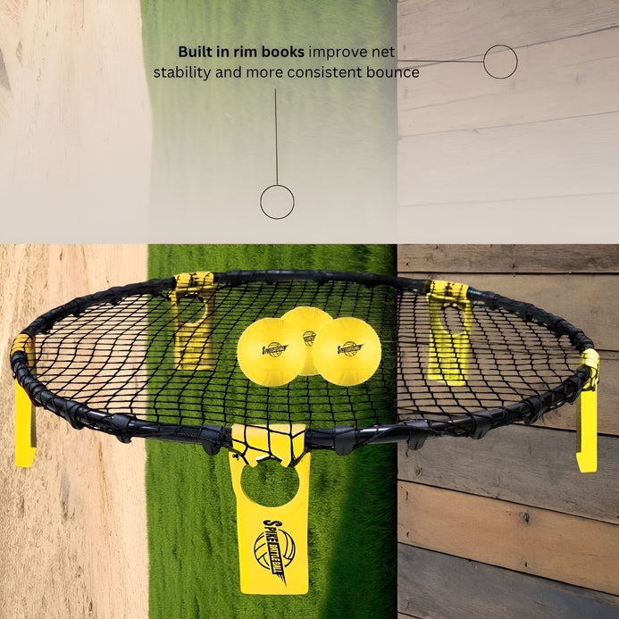Get ready for high-energy fun with the Innov8 Sports Spike Battle Ball! This dynamic 2-on-2 team game is perfect for backyards, beaches, or camping trips. Includes a durable bounce net, 3 balls, hand pump, and carry bag. Easy to set up and play, it's ideal for kids and adults alike. Promotes movement, coordination, and teamwork. A must-have for outdoor enthusiasts!