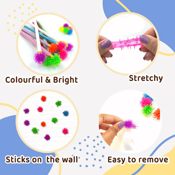These multicolored squishy, sticky & rolling wall crawlers are an ideal option for cutting down extra screen time & engaging kids in sensory stimulation. Let kids enjoy seeing'em clinging & crawling.