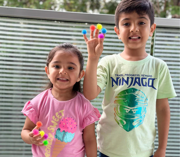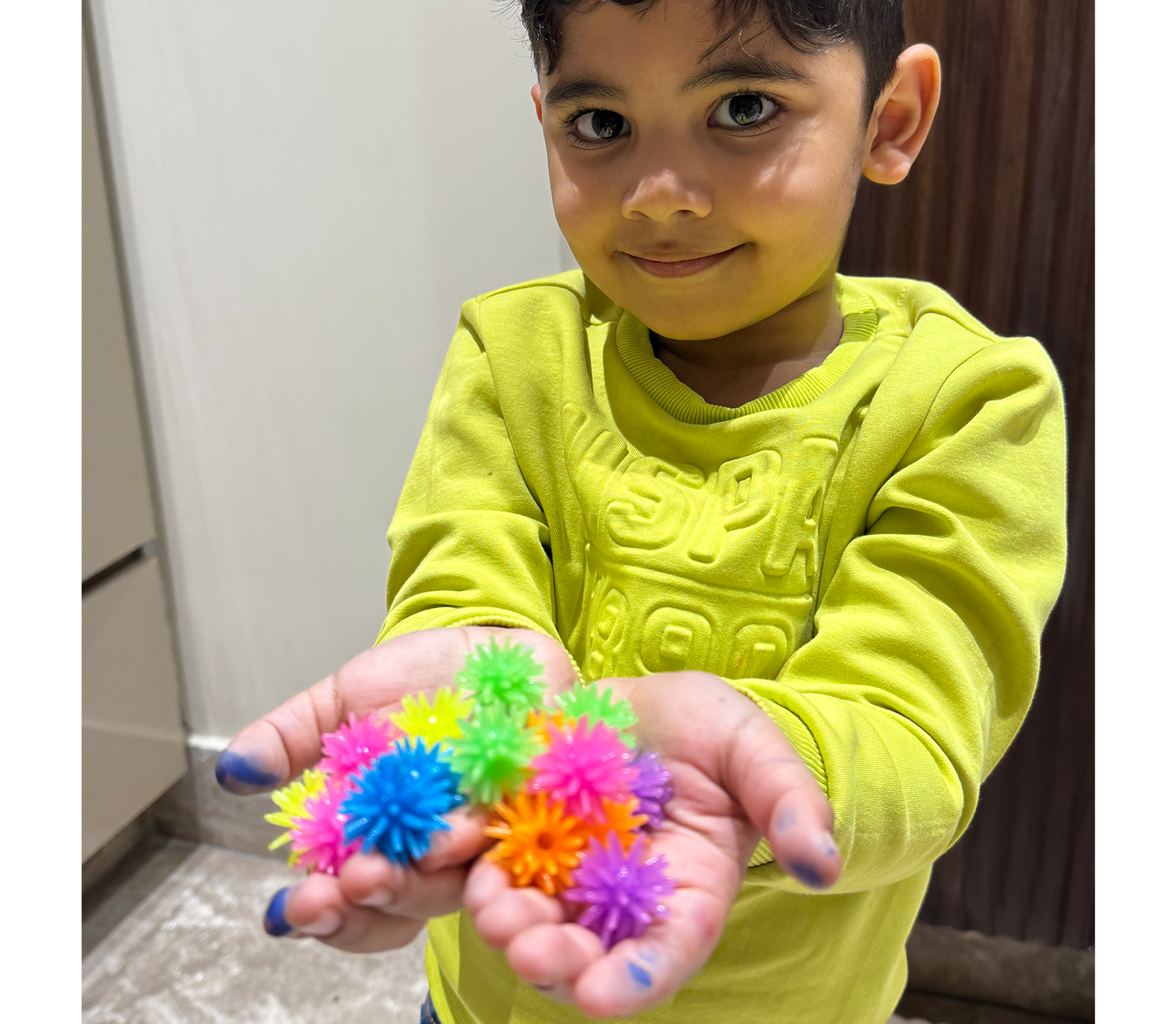 - Premium Quality - Made of fine-quality TPR material, it is non-toxic & safe for kids. The rounded corners protect the little hands. These balls never leave a sticky residue behind.