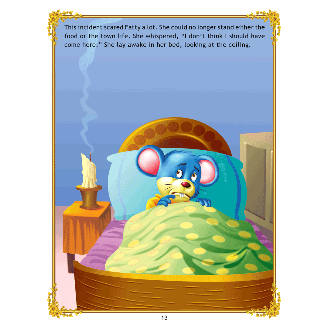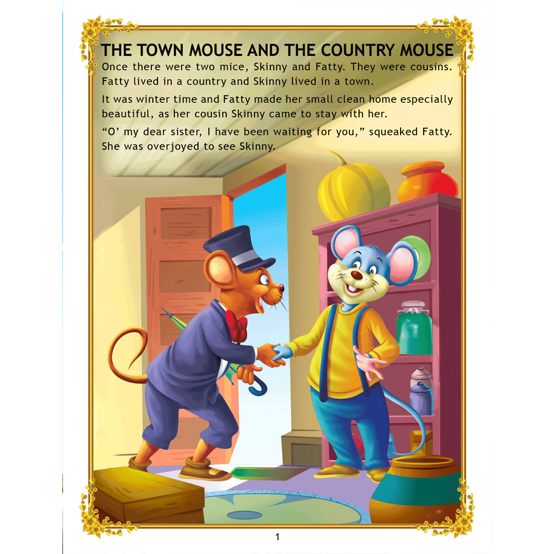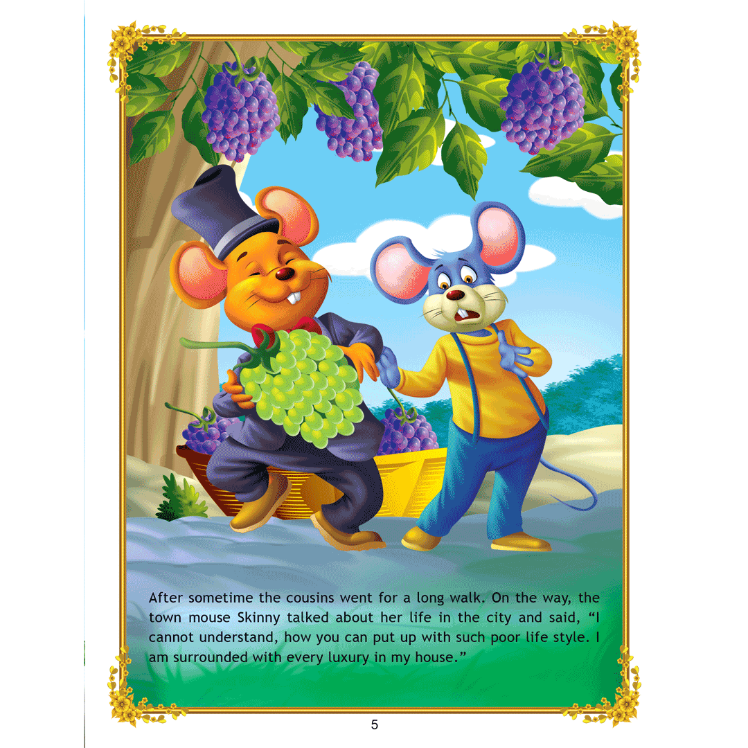 ‘The Town Mouse and the Country Mouse’ is a story of two cousins who visit each other and ultimately realise that one should be happy with what one has. It’s better to live happily with little and be content, rather than live with abundance or a lot of something, but in fear all your life. Adorned with charming illustrations, retold in easy language, this is a beautiful book to treasure. • 16 pages • Ideal for age-group 2-6 years • Amazing illustrations • Colourful cover • Inculcates reading habit This storybook is sure to become a favourite of all readers. Filled with humour and adventure it will enchant young readers and listeners. Easy-to-understand text ensures that kids enjoy reading it and improve their language skills as well.