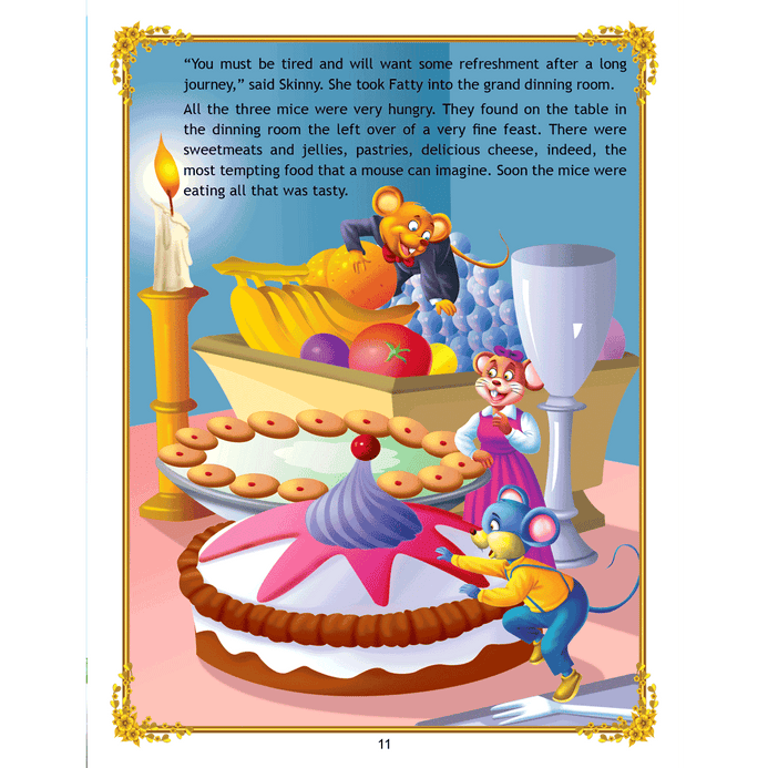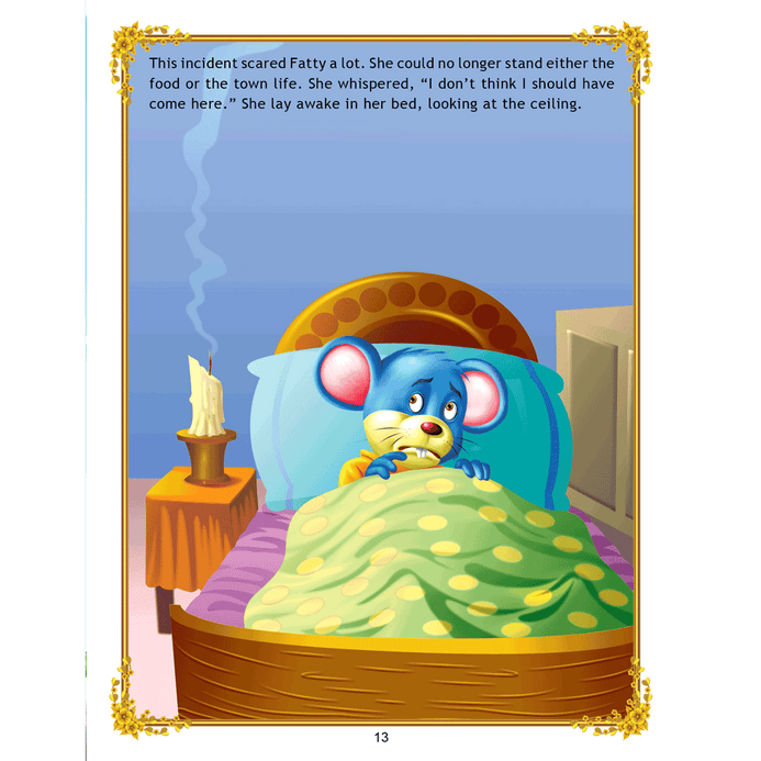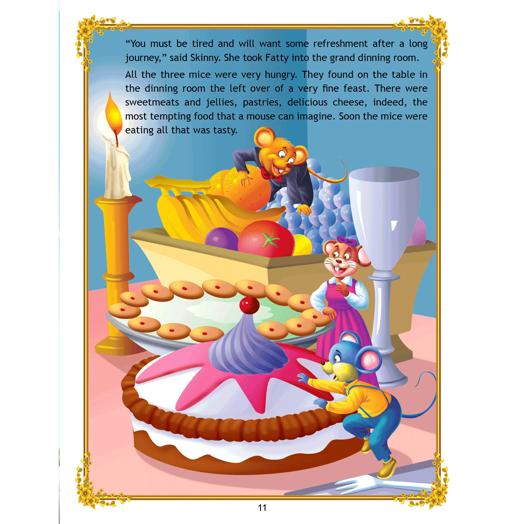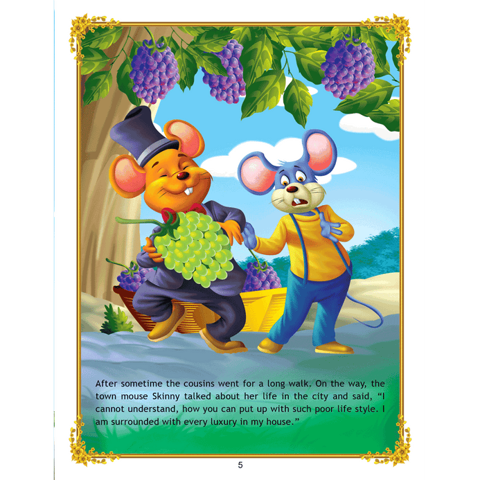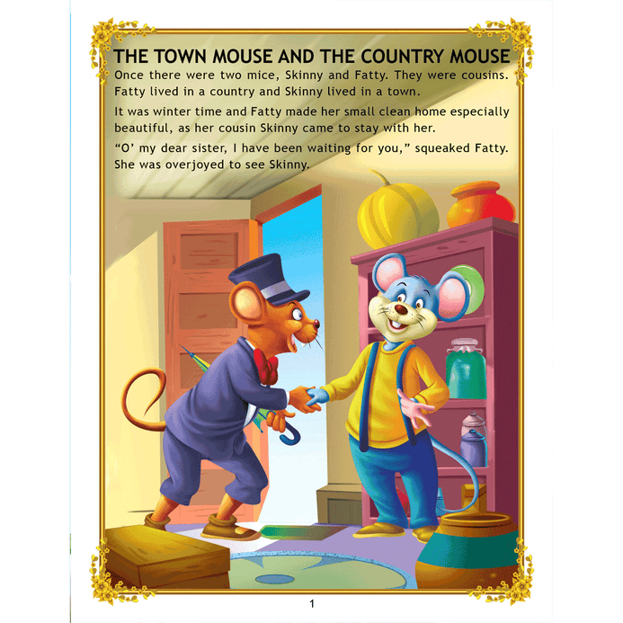 ‘The Town Mouse and the Country Mouse’ is a story of two cousins who visit each other and ultimately realise that one should be happy with what one has. It’s better to live happily with little and be content, rather than live with abundance or a lot of something, but in fear all your life. Adorned with charming illustrations, retold in easy language, this is a beautiful book to treasure. • 16 pages • Ideal for age-group 2-6 years • Amazing illustrations • Colourful cover • Inculcates reading habit This storybook is sure to become a favourite of all readers. Filled with humour and adventure it will enchant young readers and listeners. Easy-to-understand text ensures that kids enjoy reading it and improve their language skills as well.
