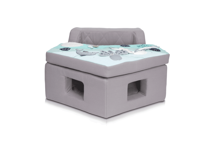 Meticulously crafted in India, this aquamarine cotton marvel features a vibrant cast of aquatic characters, ensuring endless entertainment for your little one. Dive into a world of discovery as the detachable tray unveils undersea delights, including a clandestine seahorse, a rattling fish, and a squeaky stingray. Stimulate your baby's senses with crinkly octopus appendages, a secret lobster, a mirrored oyster, and an array of engaging items designed for exploration. The cotton seat provides a cozy spot for imaginary ocean journeys, fostering both comfort and creativity. For a complete underwater experience, pair the Undersea Activity Center with our Under the Sea Play Mat and Tummy Time Toy. Transform your nursery into a mesmerizing oceanic wonderland where every moment is filled with excitement and learning. Safety is our priority – use the activity center only on the floor, supervised by an adult. Ensure the waist harness and tray are securely fastened before use. Handmade with care, this embroidered masterpiece is comprised of 100% cotton canvas, hypoallergenic polyester fiber, and polyurethane foam. Spot-clean only. Ideal for infants aged 3 months or older who can sit unassisted. Coordinate effortlessly with the Under the Sea Tummy Time Toy and Play Mat. Elevate your baby's playtime with this exceptional Undersea Activity Center, proudly made in India.