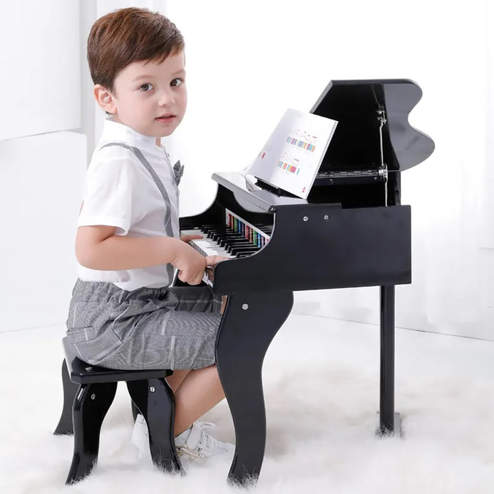 Onshine Grand Piano produces grand sound to accompany its grand appearance This piano has a realistic look, excellent resonant sound, and a lid that can be opened Promotes dexterity, hand-eye coordination, musical skills, and creativity Recommened for ages 36 months and up Non-toxic finishes and child safe materials