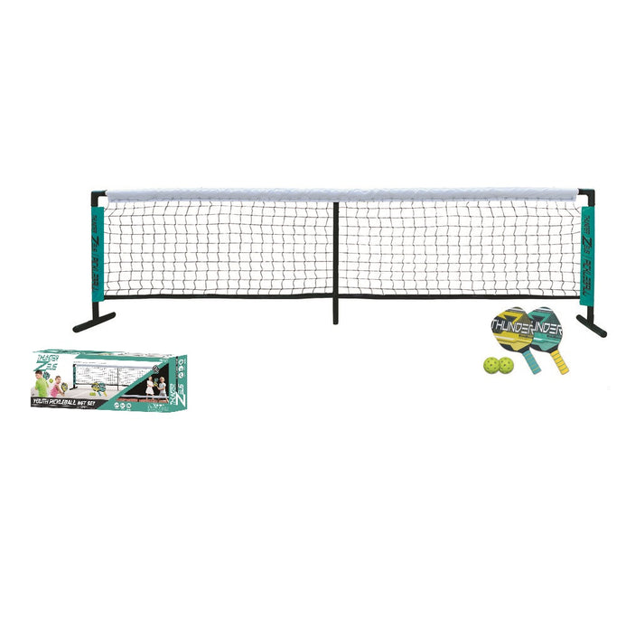 Introduce your children to the exciting world of pickleball with this comprehensive Youth Pickleball Net Set! This all-in-one kit features everything needed to start playing: a premium-quality net, two expertly crafted paddles, and two durable balls. The paddles are thoughtfully designed with 5-ply maple construction, delivering an optimal blend of durability and lightweight performance that's perfect for young players. Comfortable foam handles ensure proper grip and enhanced control during play. The set includes a sturdy net system that's easy to set up and provides the perfect height for youth gameplay. Whether in the backyard, driveway, or any flat surface, this set transforms any space into a pickleball court. It's an excellent choice for developing hand-eye coordination, agility, and social skills through active play. Suitable for children aged 5 years and above, this set makes pickleball accessible and enjoyable for young enthusiasts. The portable design allows for quick setup and storage, making it convenient for both regular practice and occasional play sessions.