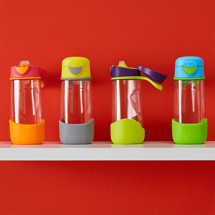 Perfect for active kids on the go, the sports spout bottle offers no-fuss easy flow drinking in our unique ergonomic triangle bottle. Its silicone spout requires no compression, and features aslight valve to prevent spills. Large push button and flip top lid makes it easy for kids to open and drink from. Parents love how the flip top lid keeps the mouthpiece clean and leak-proof when closed. Flexible handle lets kids carry it to class or training easily, plus bumper (removable) to protect against life’s knocks. Made from Tritan™ , the bottle is lightweight and extra durable. 450ml/15oz capacity. Minimal parts make it easy to clean. Dishwasher safe (top rack only).