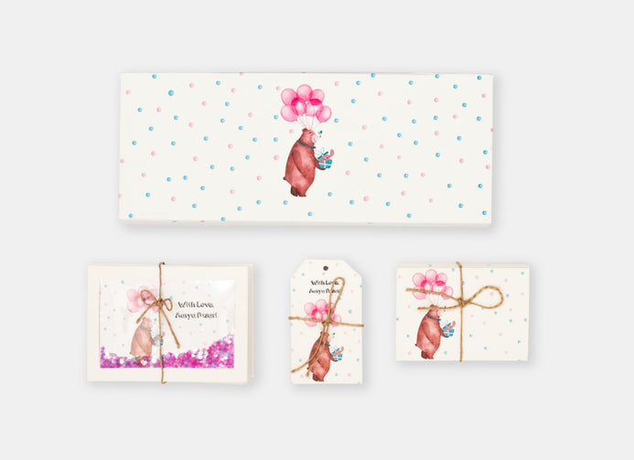 Size: Shakies 5”x3.5” | Tent cards 3.6”x2.6” | Baggage Tags 2"x5.5" | Gift Box 4.2”x10.5”x2”