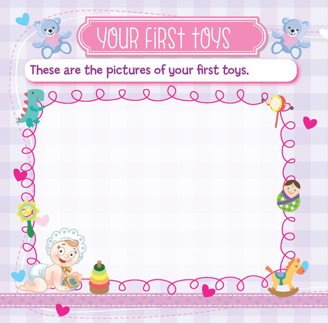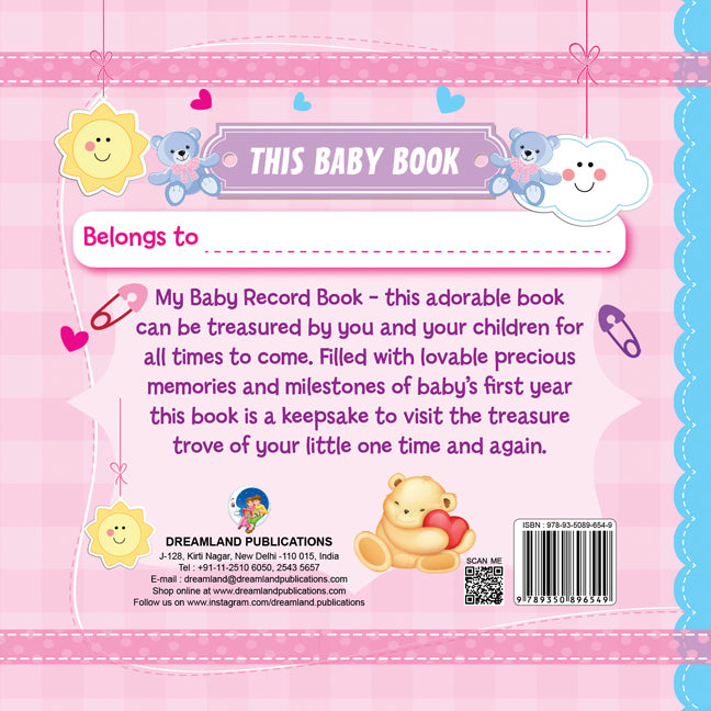 ‘My Baby Record Book’ – this adorable book can be treasured by you and your children for all times to come. Super adorable pages of this book include: who this book belongs to, baby’s introduction, family tree, baby shower, gifts, guests, first steps, and more. • Ideal for ages 0-2 • Beautiful soft cover designs both pink and blue Filled with lovable precious memories and milestones of baby's first year this book is a keepsake to visit the treasure trove of your little one time and again. ?