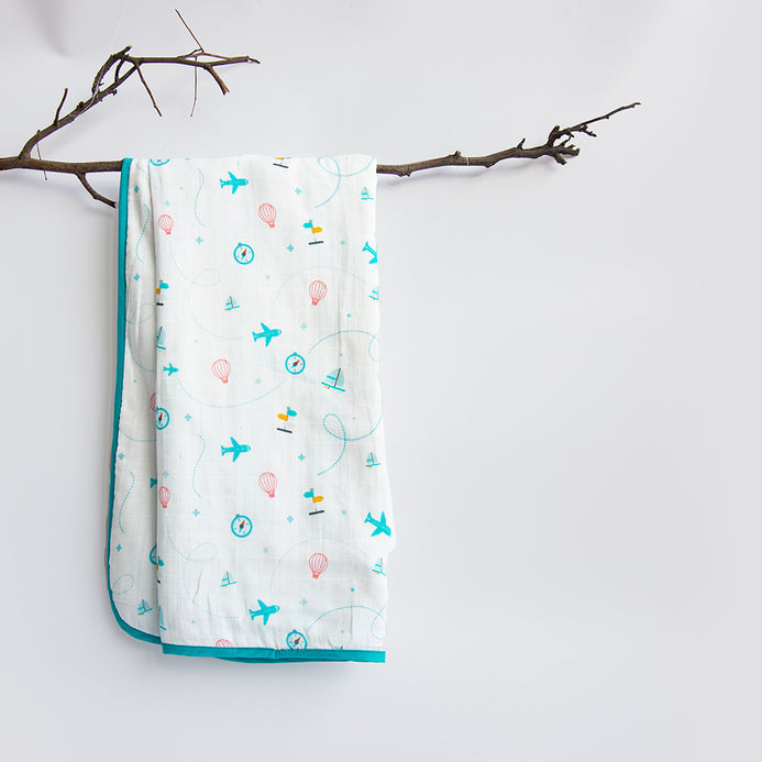 • SIZE & MAKE- Three layers of 100% Organic Cotton Muslin, Reversible with a print at back, generously sized at 110 x 110 cm, Hypoallergenic, environment- friendly AZO free dyes. Handmade with care in India.