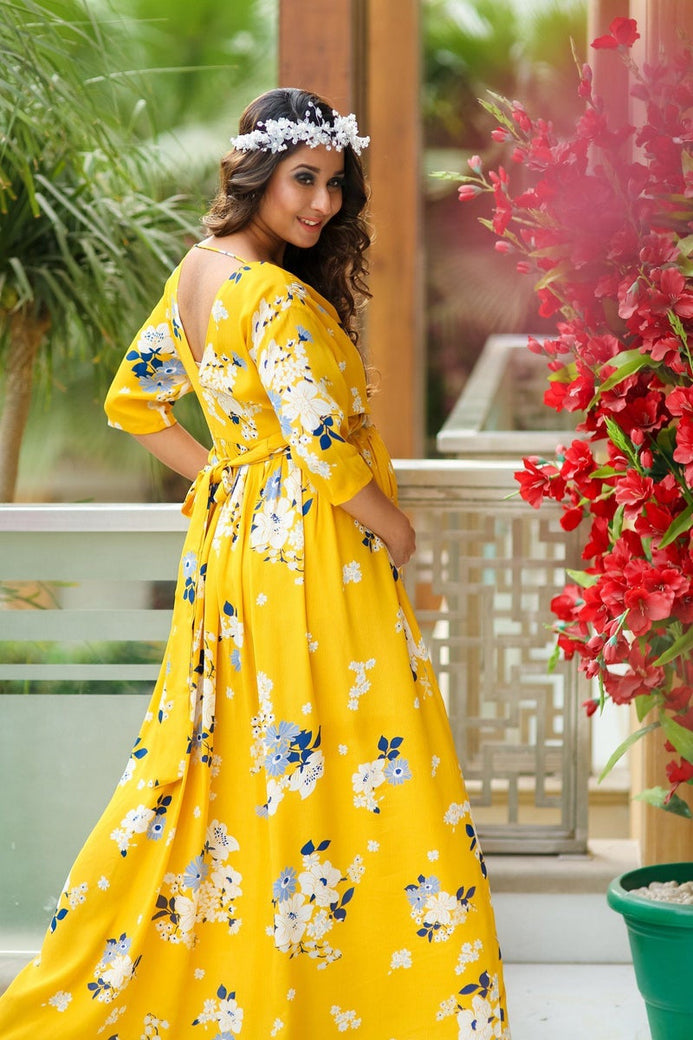 Feel happy and confident in Momzjoy floral wrap dress, a delightful option for this summer. Maternity must-have for all the chic mums-to-be, this maternity and feeding wrap dress made in lightweight crinkle crepe has a soothing floral print. Suitable for maternity shoots and baby shower celebrations, this dress has gathered highlighting your baby bump. Unique back cut and flattering wrap front make this dress suitable during and post-pregnancy.