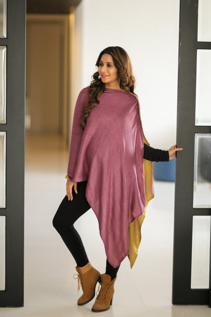Feel like a show stopper in our super soft and luxe feeling nursing stole made in high quality wool modal. It has been thoughtfully designed with reversible feature with swaroski embellishments on one side and solid deep shade on the reversible side. Side buttons can be used to fasten the stole.