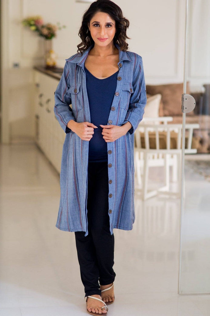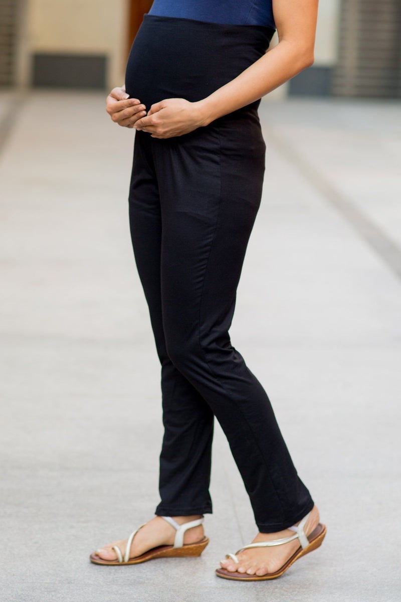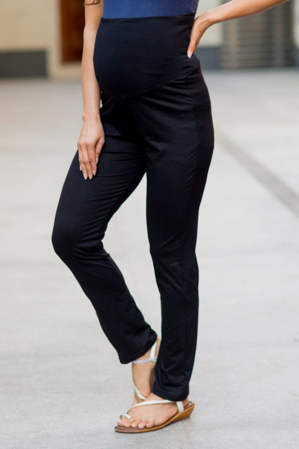 Slip in to these comfortable black leggings made in lightweight soft jersey to help your skin breathe. Tapered at your ankles, these leggings have a soft supporting bump band around the belly. Wear it during the day when you relax at home or use it as pyjamas for a sound sleep. Pair it up with your favourite top for work wear.