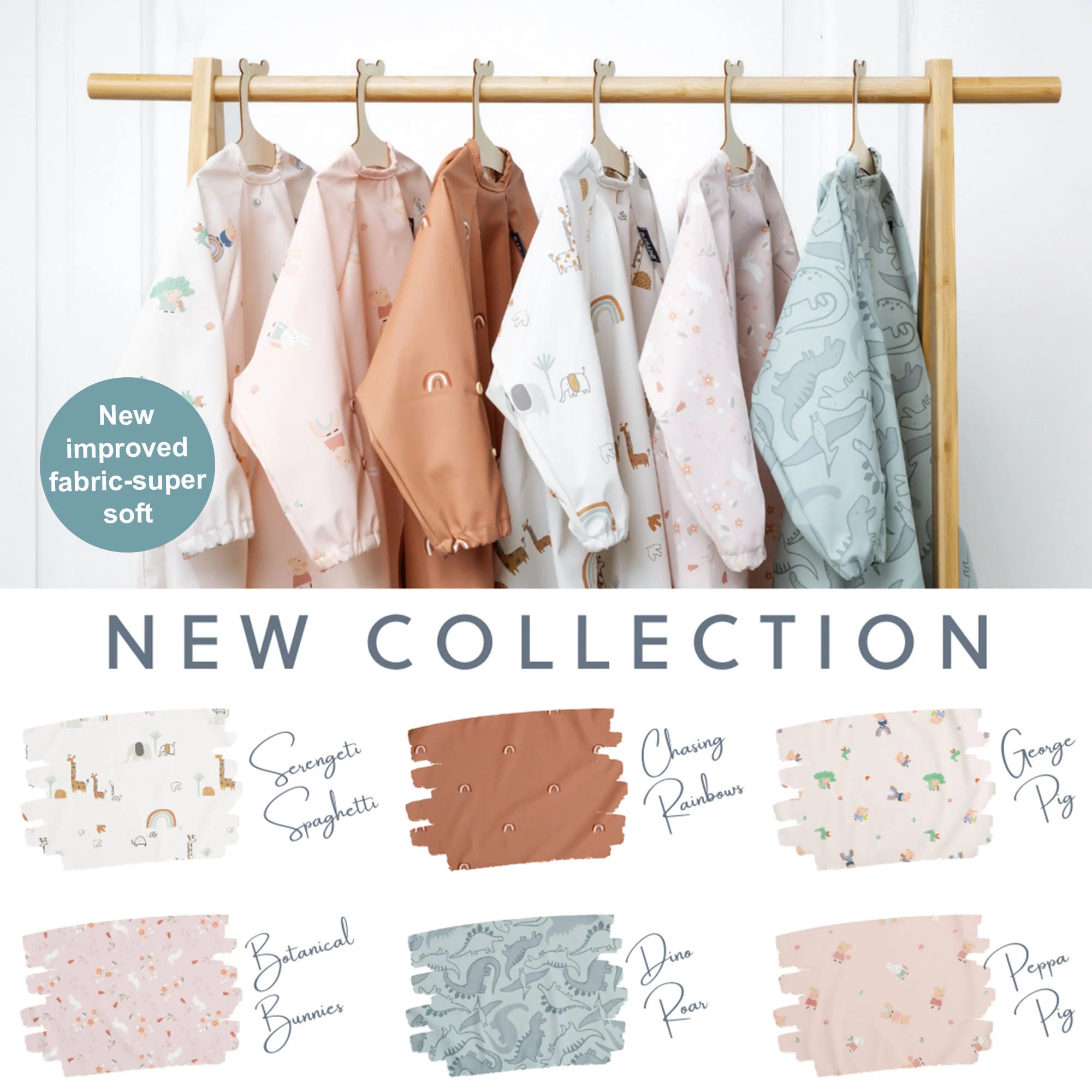 Introducing our amazing long sleeve feeding bibs for babies and toddlers by Bibado - the ultimate solution for mess-free mealtimes and worry-free weaning adventures! Tired of those traditional silicone bibs that always lead to messy clothes and endless clean-up? Look no further! Our bibs are designed to fit seamlessly on your highchair, making mealtime a breeze and keeping your little one perfectly clean and dry, even during the messiest meals or craft activities. Whether your highchair is wide, large, or doesn't have a tray, our coveralls work like a charm. Plus, they're incredibly versatile, fitting most strollers and can even be used directly on a table. You can trust us to deliver coveralls that guarantee mess-free meals both on the go and at home. Made from a unique, lightweight, and 100% waterproof material, our easy-wipe coverall weaning bibs are a piece of cake to clean after every messy adventure. Just give them a quick wipe, and they'll be good as new. For a more thorough cleaning, simply toss them in the washing machine at 40 degrees Celsius or 100 degrees Fahrenheit. But hold on, there's more!