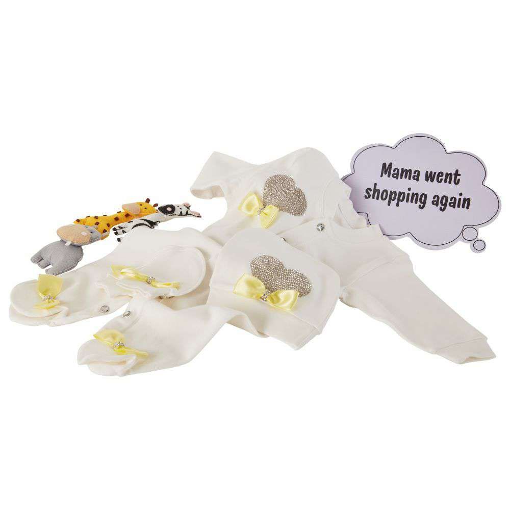 • 3 PC Set includes - Full body suit romper with Crystal motif , Cap with motif , mittens