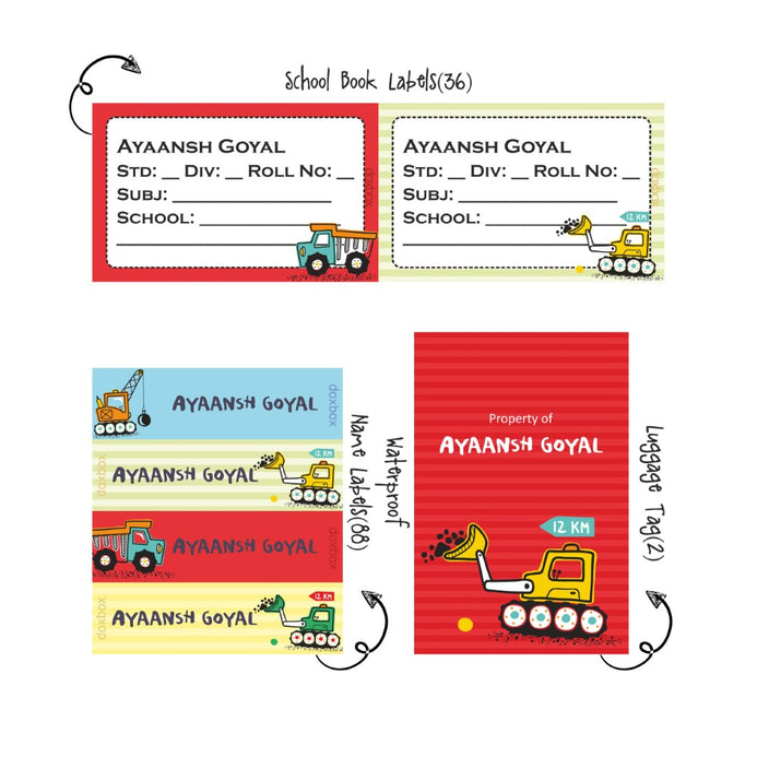 - Product Dimensions: water proof label - 7 cms *2 cms, School Book label - 8 cms * 5 cms, Luggage tag - 6 cms * 9 cms