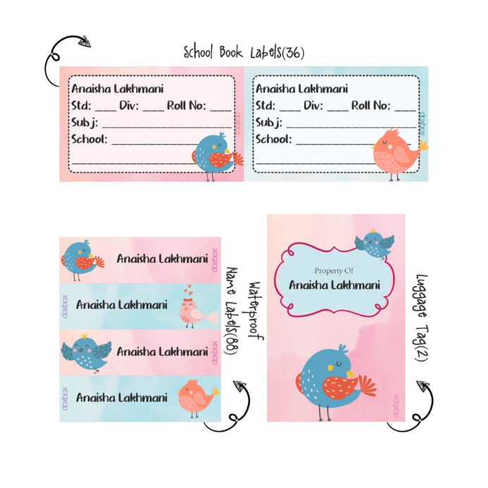 • Product Dimensions: water proof label - 7 cms *2 cms, School Book label - 8 cms * 5 cms, Luggage tag - 6 cms * 9 cms