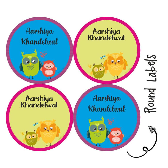 Personalised Round Name Labels | Cute Owls