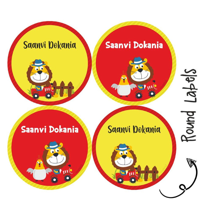 Personalised Round Name Labels | Lion On The Tractor