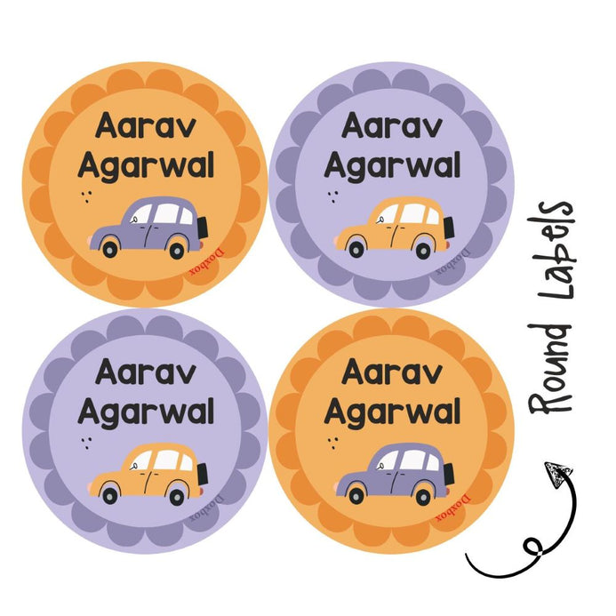 Personalised Round Name Labels | Purple Car