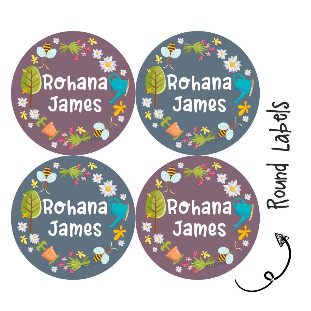 Personalised Round Name Labels | Spring Garden