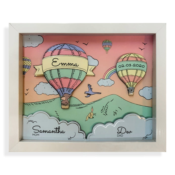 Personalised Shadow Box Frame with Silver Foil | Coral Hot Air Balloon