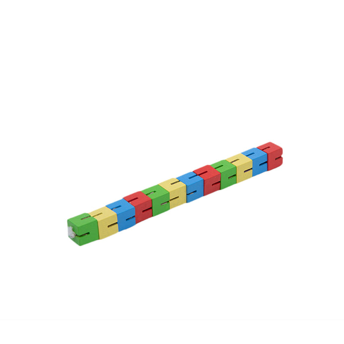 Wooden cubes connected with elastic band that fit into precisely cut grooves for kids to twist and manipulate to make a zillion things. A great toy that helps promote color recognition, spatial reasoning, deduction skills and problem-solving ability.