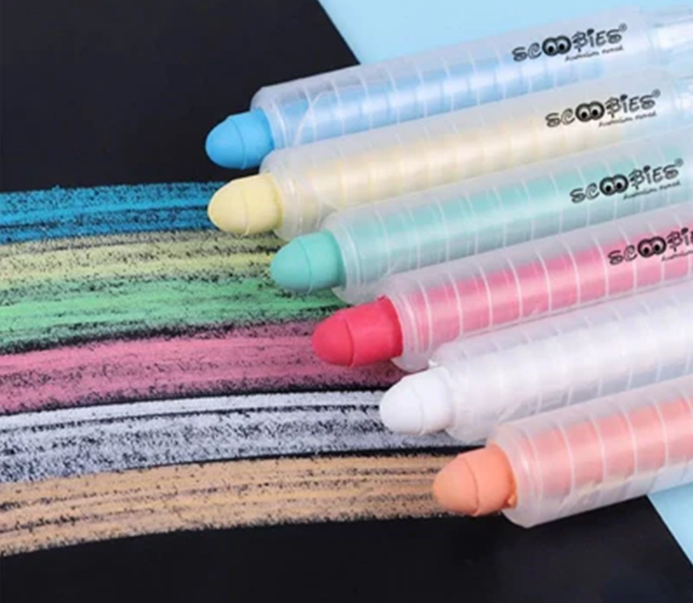 Pack Includes: Cobalt blue, pearl white, beige, sea green, lavender pink, pastel pink, pastel orange, pastel yellow, bluish green, pastel peach, neon orange, and pastel green color chalks.