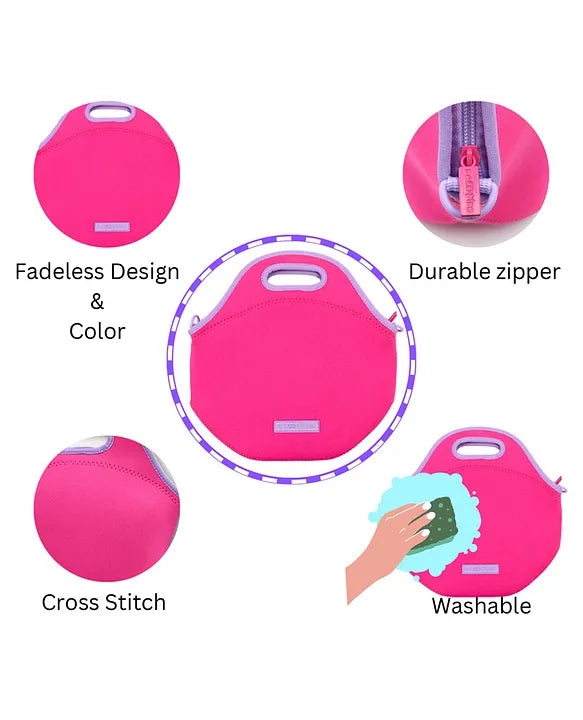 • Premium Quality - This pinklicious bag is made using eco-friendly neoprene material. It is a non-toxic, BPA-free, and kids-safe bag. It comes with adjustable & detachable shoulder straps and an easy-to-carry soft grip handle. Both sides come with 360 degrees rotatable hook. The zipper head size is moderate and smooth and can be used by adults and children.