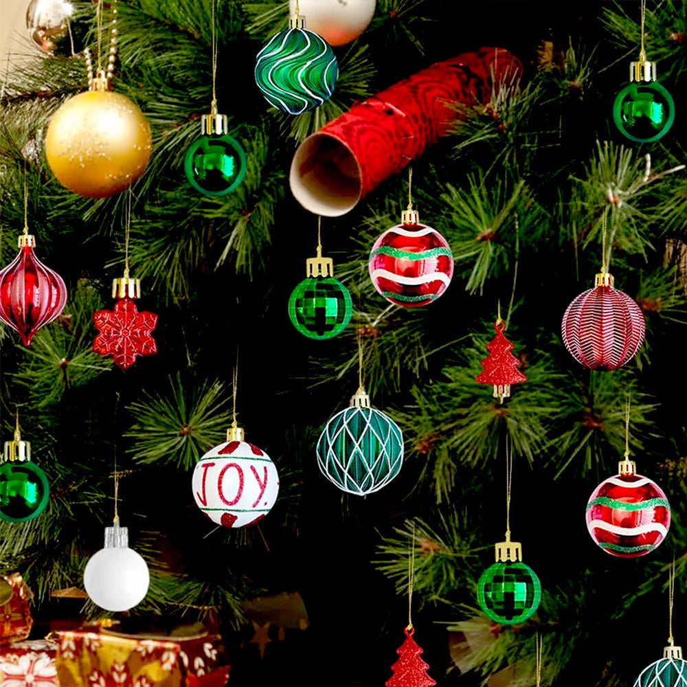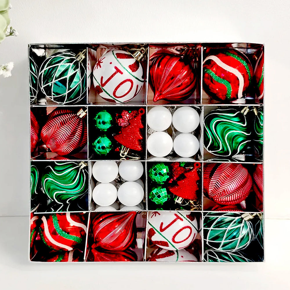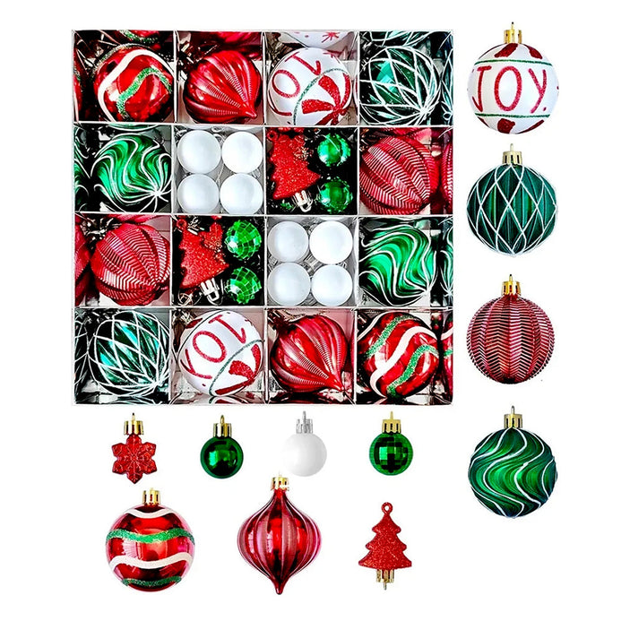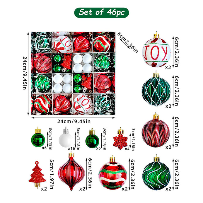 46Pcs Joy Swirls Red, Green & White Christmas Tree Balls