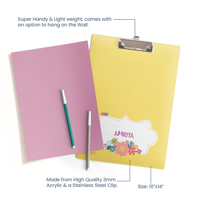 You may not realise it, but a clipboard is an irreplaceable part of school and is useful during exams, classes, drawing and other activities. So how amazing would it be to give your kid a custom clipboard of their favourite colour with personalised printed names and designs! They can carry this easy-to-store and premium quality online clipboard to school with pride. Made from high-quality 3mm acrylic, it is lightweight, comes with a stainless steel clip and can be hung on the wall. Personalize a themed clipboard with your child’s name, initials or any other text. Kids will enjoy carrying it around school/classes for homework & more. Customize this kid’s clipboard with a name for the perfect gift for birthday parties, back-to-school supplies & more.