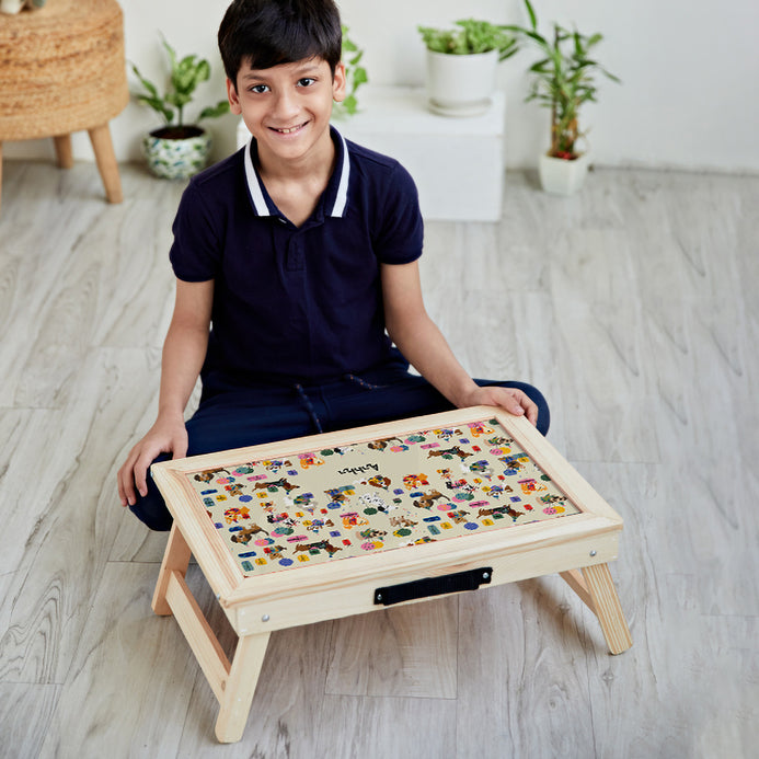 Make everyday life easy and convenient with this kids’ folding desk online at Zoomin. This personalized Foldable Desk is a must-have for every home! Kids, as well as adults, will feel 100% safe while making use of this desk with personal items like a laptop, iPad, tablet, books, drawing canvas, snacks, food, and more on the tray. This customized folding desk is portable and can be moved about your home for your comfort and convenience. You can easily adjust the angle of the desk to suit your comfort by simply lifting up the lid until you feel it’s perfect. Customize this sturdy Foldable Desk with cute designs & personalize it with your kid’s name to make it even more special for them.