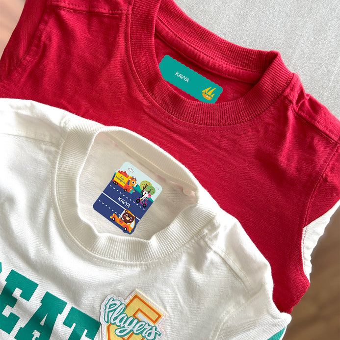 Tired of lost or mixed-up clothes? These Iron-On Name Labels are the perfect solution for school-going kids, siblings, and boarding school students. These durable, washable, and easy-to-apply labels ensure that your child’s clothing stays identified and never gets misplaced. Simply place the label on the cloth and iron above it for about 1 minute - it's that easy! No more searching through lost-and-found piles, as these labels stay put through multiple washes and won’t fade or peel off. Personalized with your child’s name (up to 12 characters), each set includes 26 labels and comes in 24 fun designs like sports, unicorn, floral, dino, and more. NOTE: Iron on labels are very easy to apply with a home iron. Exact instructions will be enclosed in the package ordered.