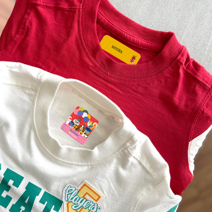 Tired of lost or mixed-up clothes? These Iron-On Name Labels are the perfect solution for school-going kids, siblings, and boarding school students. These durable, washable, and easy-to-apply labels ensure that your child’s clothing stays identified and never gets misplaced. Simply place the label on the cloth and iron above it for about 1 minute - it's that easy! No more searching through lost-and-found piles, as these labels stay put through multiple washes and won’t fade or peel off. Personalized with your child’s name (up to 12 characters), each set includes 26 labels and comes in 24 fun designs like sports, unicorn, floral, dino, and more. NOTE: Iron on labels are very easy to apply with a home iron. Exact instructions will be enclosed in the package ordered.