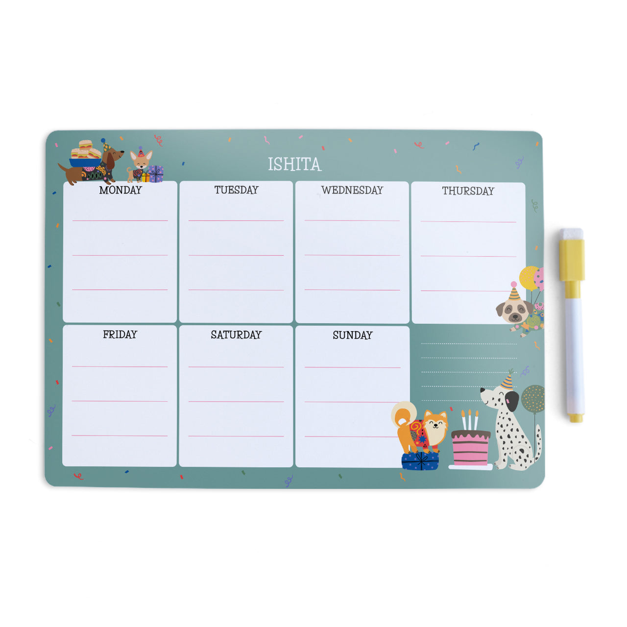 No more struggling with meal plans & fussy eaters. Create excitement in your kids by personalizing a meal planner for them! Involve them in the process with ease & create balanced weekly meals with this cutely designed personalized Meal Planner. P.S: Special Magnetic Marker included for FREE!