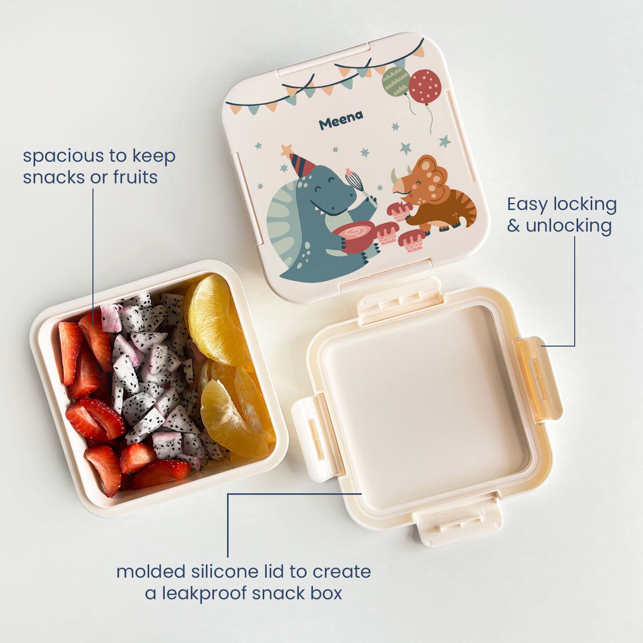 The Personalised Snack Box is a fun and practical must-have for keeping snacks fresh and organized! Made from Food-grade plastic, & Food-grade silicone, this square snack box is BPA free & Phthalate free. It is a lightweight and durable snack box that is perfect for school, travel, and on-the-go snacking. With 20+ unique designs to choose from, you can customize it with a name on top, making it a truly special and one-of-a-kind gift. Ideal for school lunches, birthday return gift hampers, or quick snacks on the move, it's easy to carry—even for little ones. Add a personal touch to mealtime and customize your snack box today!