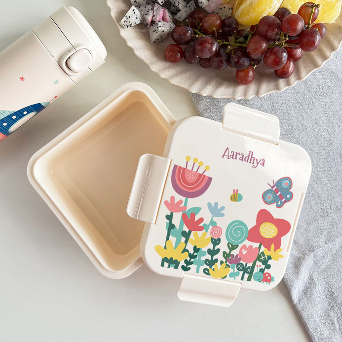 The Personalised Snack Box is a fun and practical must-have for keeping snacks fresh and organized! Made from Food-grade plastic, & Food-grade silicone, this square snack box is BPA free & Phthalate free. It is a lightweight and durable snack box that is perfect for school, travel, and on-the-go snacking. With 20+ unique designs to choose from, you can customize it with a name on top, making it a truly special and one-of-a-kind gift. Ideal for school lunches, birthday return gift hampers, or quick snacks on the move, it's easy to carry—even for little ones. Add a personal touch to mealtime and customize your snack box today!