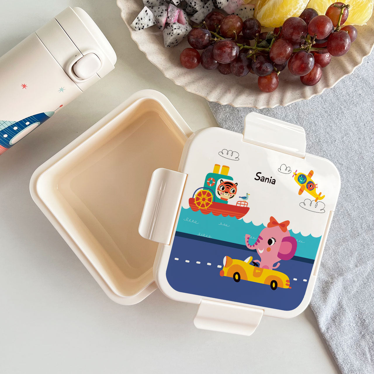 The Personalised Snack Box is a fun and practical must-have for keeping snacks fresh and organized! Made from Food-grade plastic, & Food-grade silicone, this square snack box is BPA free & Phthalate free. It is a lightweight and durable snack box that is perfect for school, travel, and on-the-go snacking. With 20+ unique designs to choose from, you can customize it with a name on top, making it a truly special and one-of-a-kind gift. Ideal for school lunches, birthday return gift hampers, or quick snacks on the move, it's easy to carry—even for little ones. Add a personal touch to mealtime and customize your snack box today!