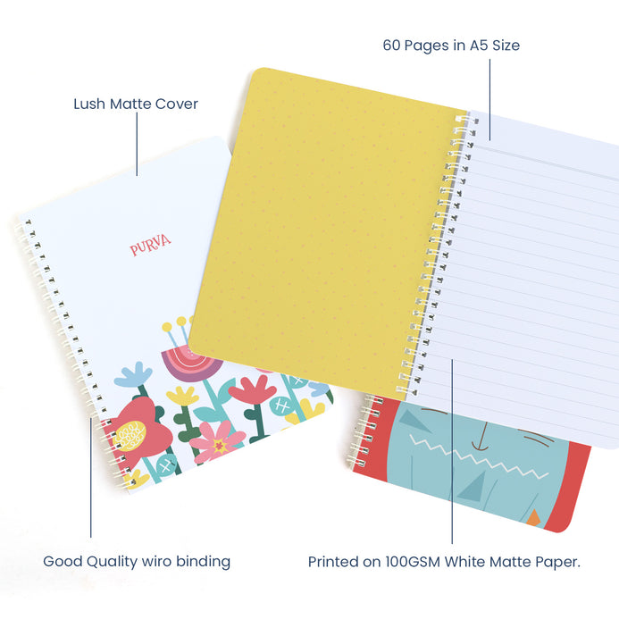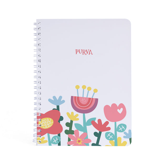 How excited will your kids be if their notebook had their favourite theme & their name on the cover page? Pick from dotted, ruled or plain pages & enjoy this customized Spiral bound Notebook! Let them indulge in creative writing, journaling, doodling, making study timetables & more. Our range of customized Spiral Notebooks are a big yes for kids of all ages! This spiral binding notebook has pretty and customised designs on the front that you can change. It has 60 pages and is printed on white matte paper with premium quality for the best writing experience.