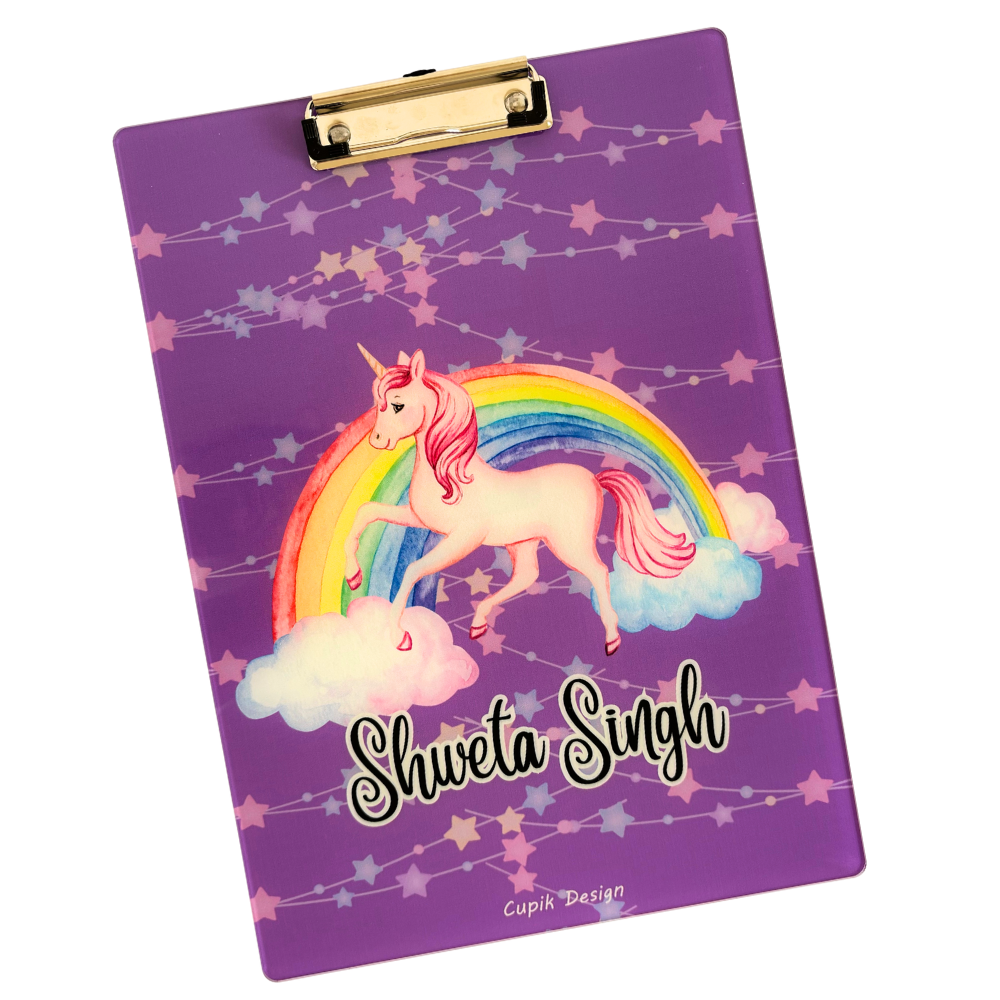 Personalised Acrylic Clipboard | Rainbow & Unicorn