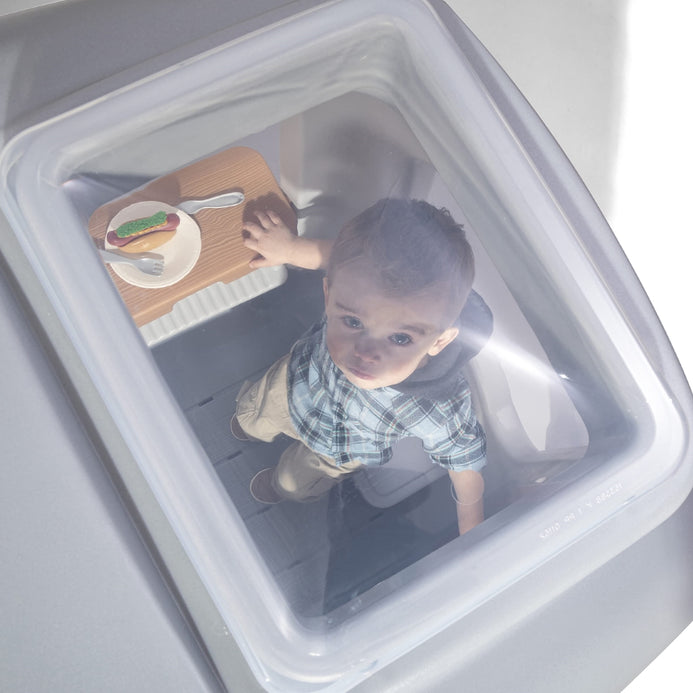 Explore the great outdoors with this play camper. The Adventure Camper is loaded with engaging pretend play activities, perfect for social development. Featuring a molded-in kitchen area with large sink, stovetop with clicker knobs, and plenty of storage space. Other realistic features include a skylight, doorbell and decorative wheel. Made in the USA of US and imported parts.