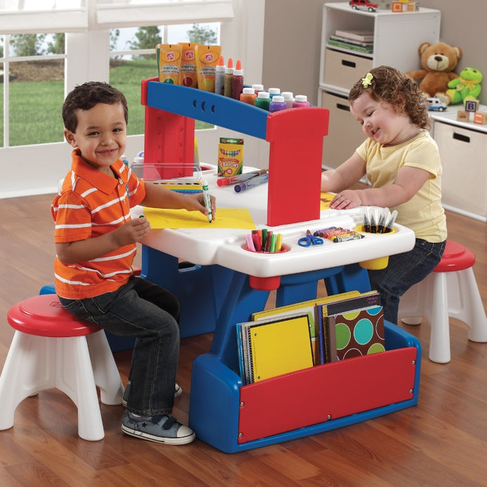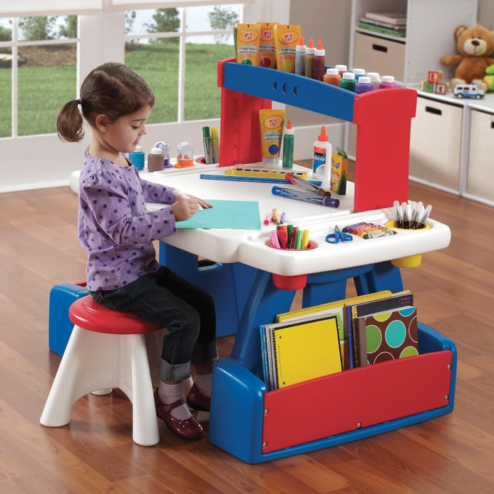 This Step2 Project Table will help enhance the imaginations of your toddlers and preschoolers through creative play. This art desk has plenty of space for kids to store crayons, paint brushes and pencils. It's the perfect activity table and chair set for your youngsters' playroom or bedroom. Made in USA of US and imported parts.